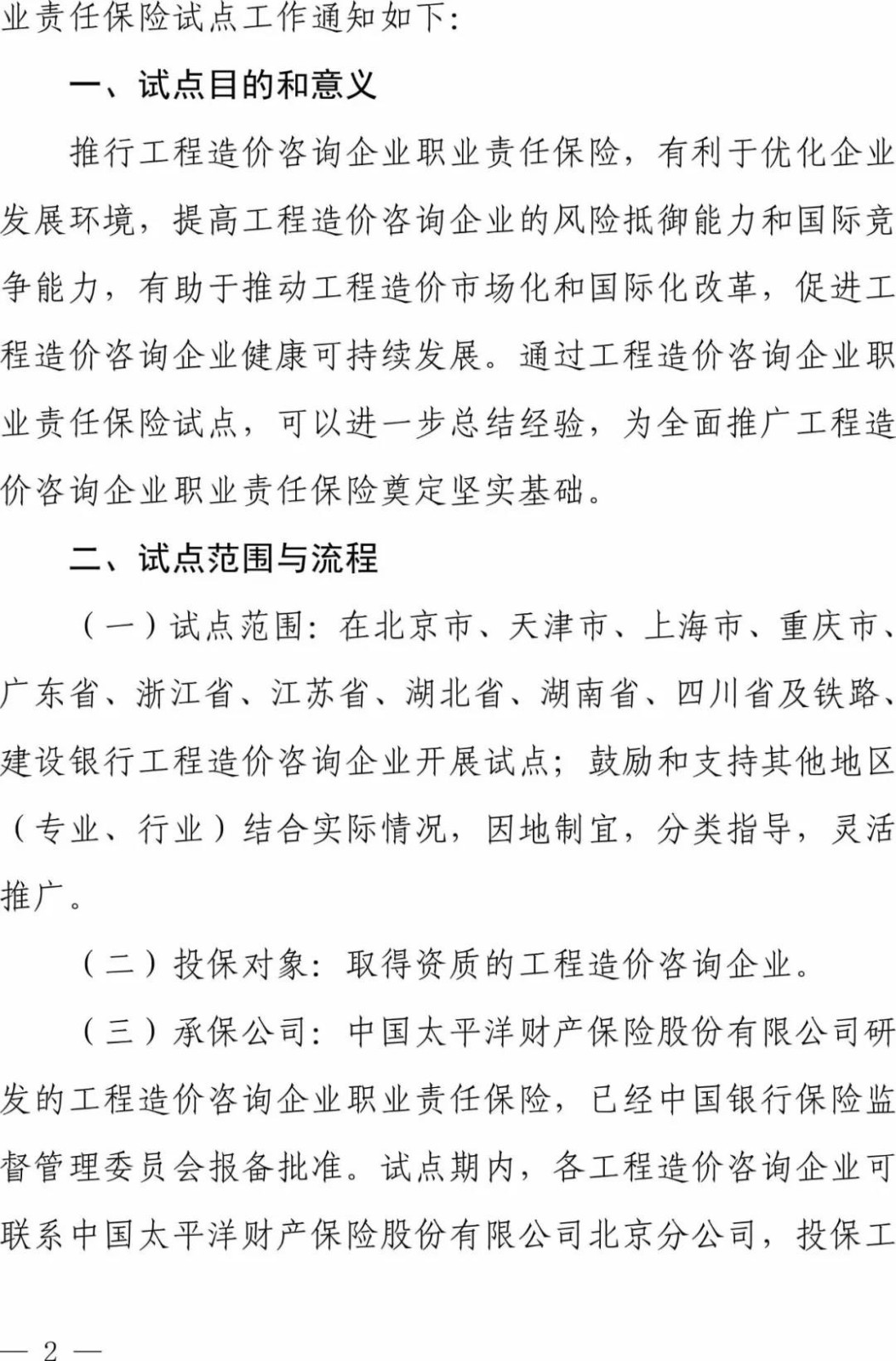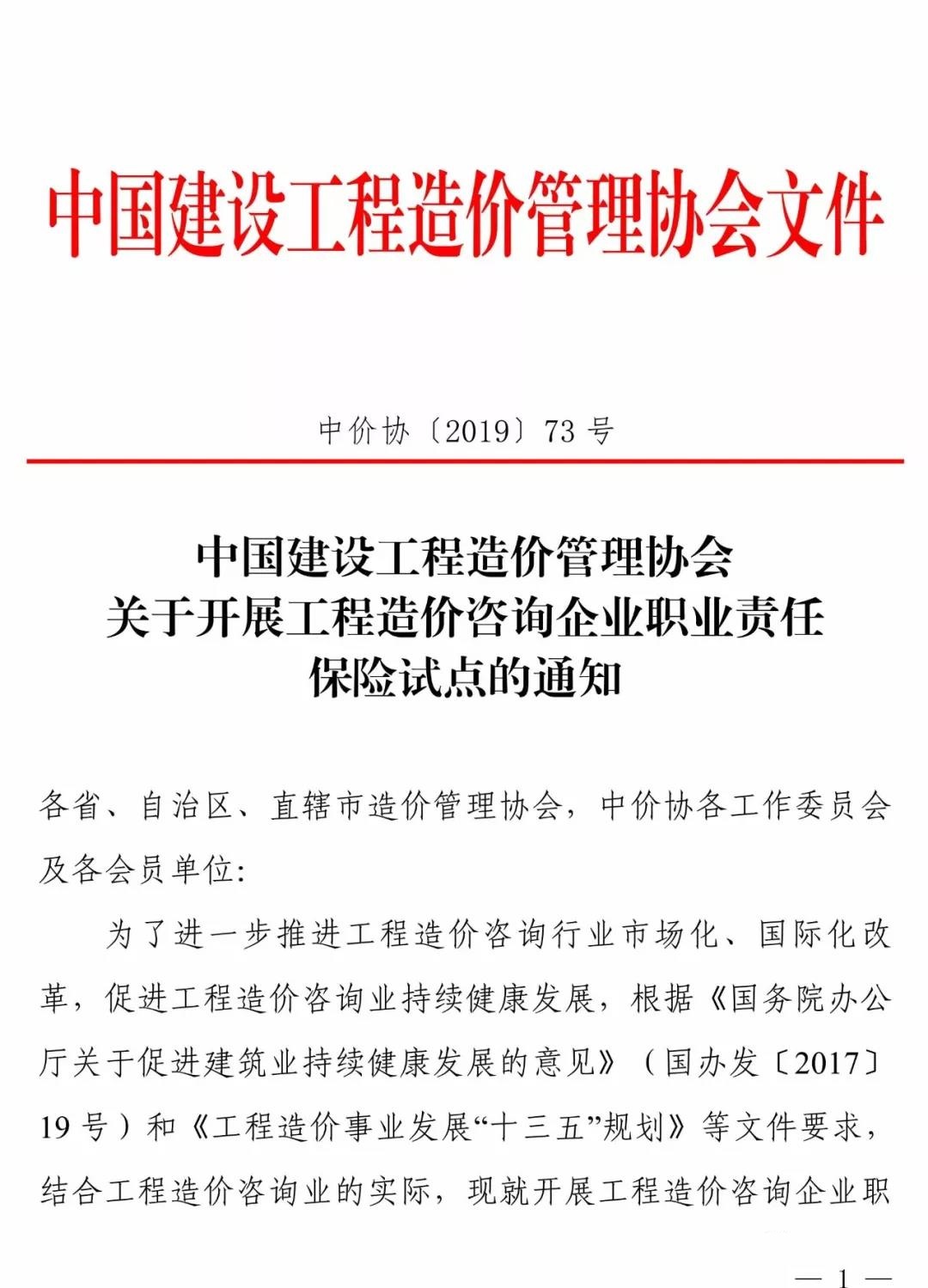 转发︱中国建设工程造价管理协会关于开展工程造价咨询企业职业责任保险试点的通知